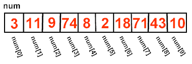 declares an array named num