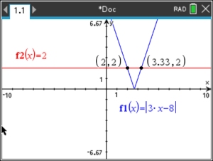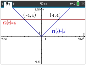 The TI-Nspire CS II non-CAS treats absolute value as a numerical piecewise function (in parts), giving one answer (which is the answer closest to the origin).