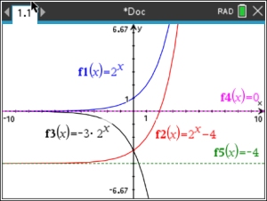 f3: y = -3•2x stretch function, negated function reflected over x-axis
