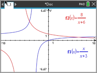 Hint: When working with rational equations, it may be difficult to "see" the intersection point if the viewing window is a small representation of the graph.