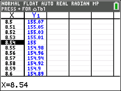 Go to TABLE (above GRAPH) and arrow up or down